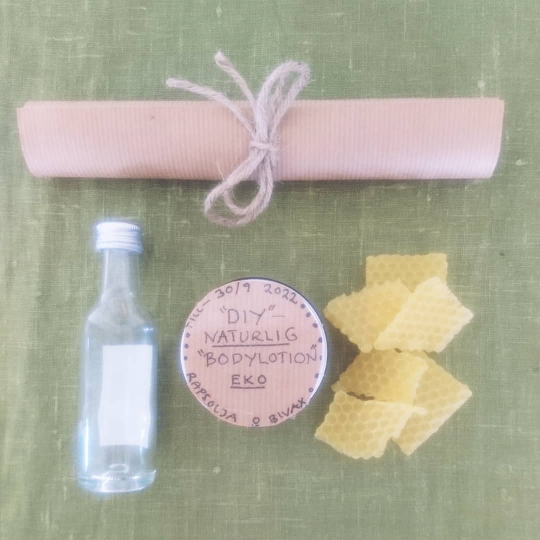I ”diykit Bodylotion” smälter du bara och rör ihop två enheter. Fantastiskt, ge den en doft om du vill. Fungerar ypperligt utan, då lätt doft av underbart bivax.