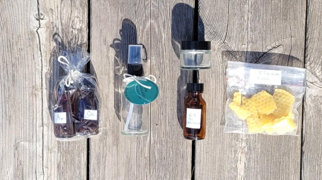 Bara smält och rör och blanda oljor i flaskan. Återanvänd sen burk o flaska när du gör nytt, recept ingår såklart.
