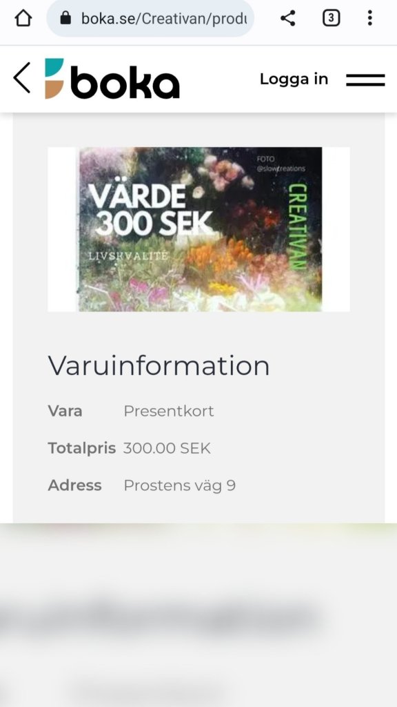 Nu kan du köpa presentkort till dig själv eller någon annan i julklapp. Betala med kort eller faktura på boka.se/ creativan. Se fotot.