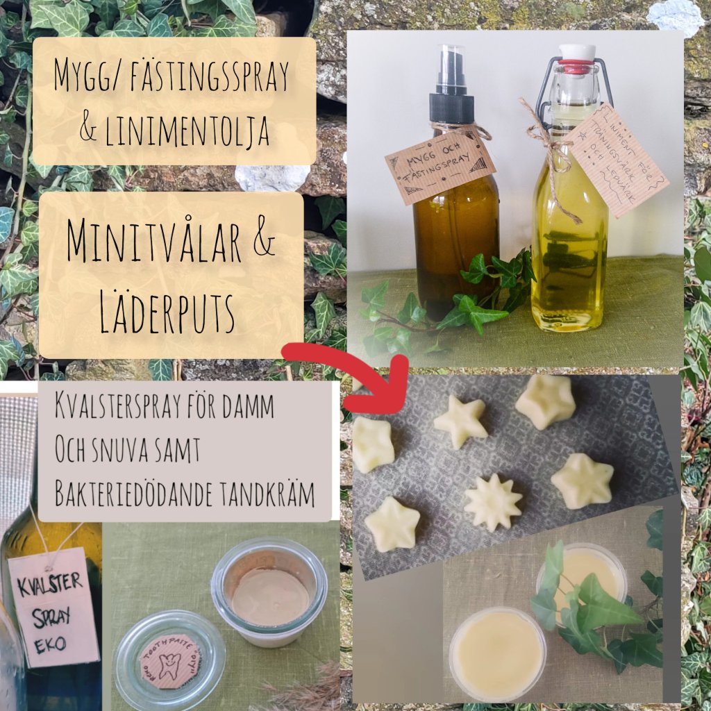 1. Linimentolja & mygg/ fästingspray. Lagom till vårens krämper av trädgårdsarbete & insektskydd mot fästingar & gräset/ myggor i vårskogen.