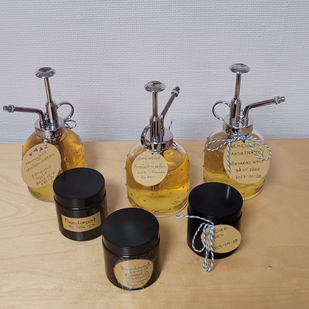 Tjohoo nu har vi gjort 4 produkter av 6 i serien 3ggr & förberett för de två sista som ska stelna & luftas till nästa gång. I torsdags kväll blev det lite mer att göra än gång 1, så ett tidsschema skrev jag upp på whiteboardtavlan. Här har vi krämig deo med valfri doft som blev 3 bergamott, upplyftande & lugnande på samma gång. Samt ett ansiktsvatten med tre olika örter & tre olika egenskaper. Finns några platser kvar på nästa seriekurs i Kalmar, kika in på Studieförbundet vuxenskolan Kalmar