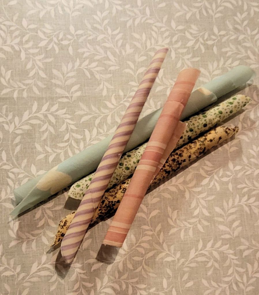 Bivaxdukar från kurskväll. En är med nytt recept bl.a kåda.