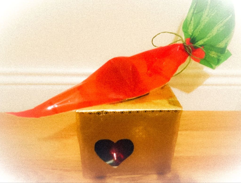 Tittskåp kan även vara mindre med ett hål eller fönster. Kanske vill man ge bort i present. Här ovan är moroten en påse & inuti en hemlis…