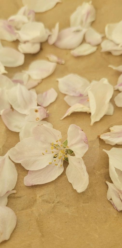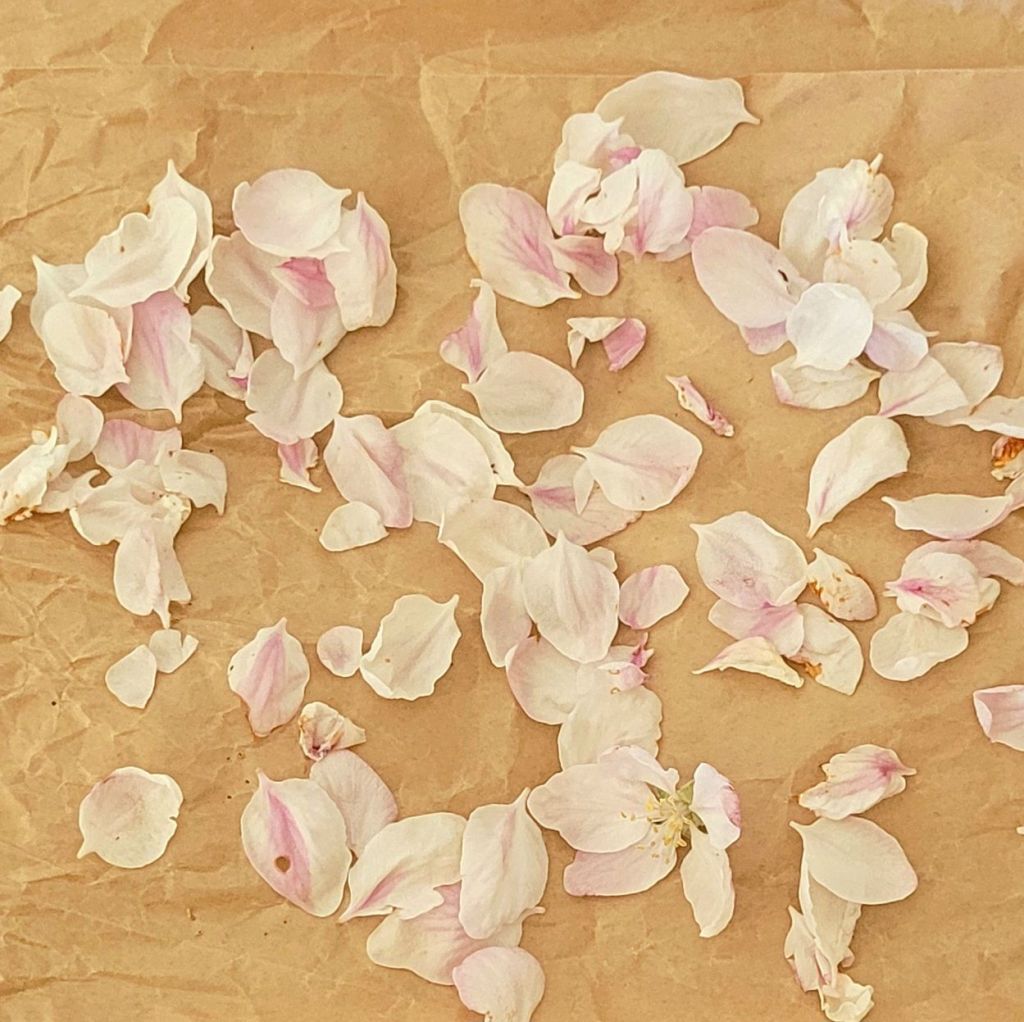 Nu ligger äppelblom på tork av sorten Fredrik en variant av Aroma.