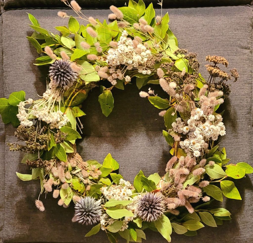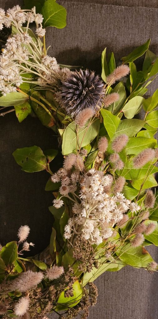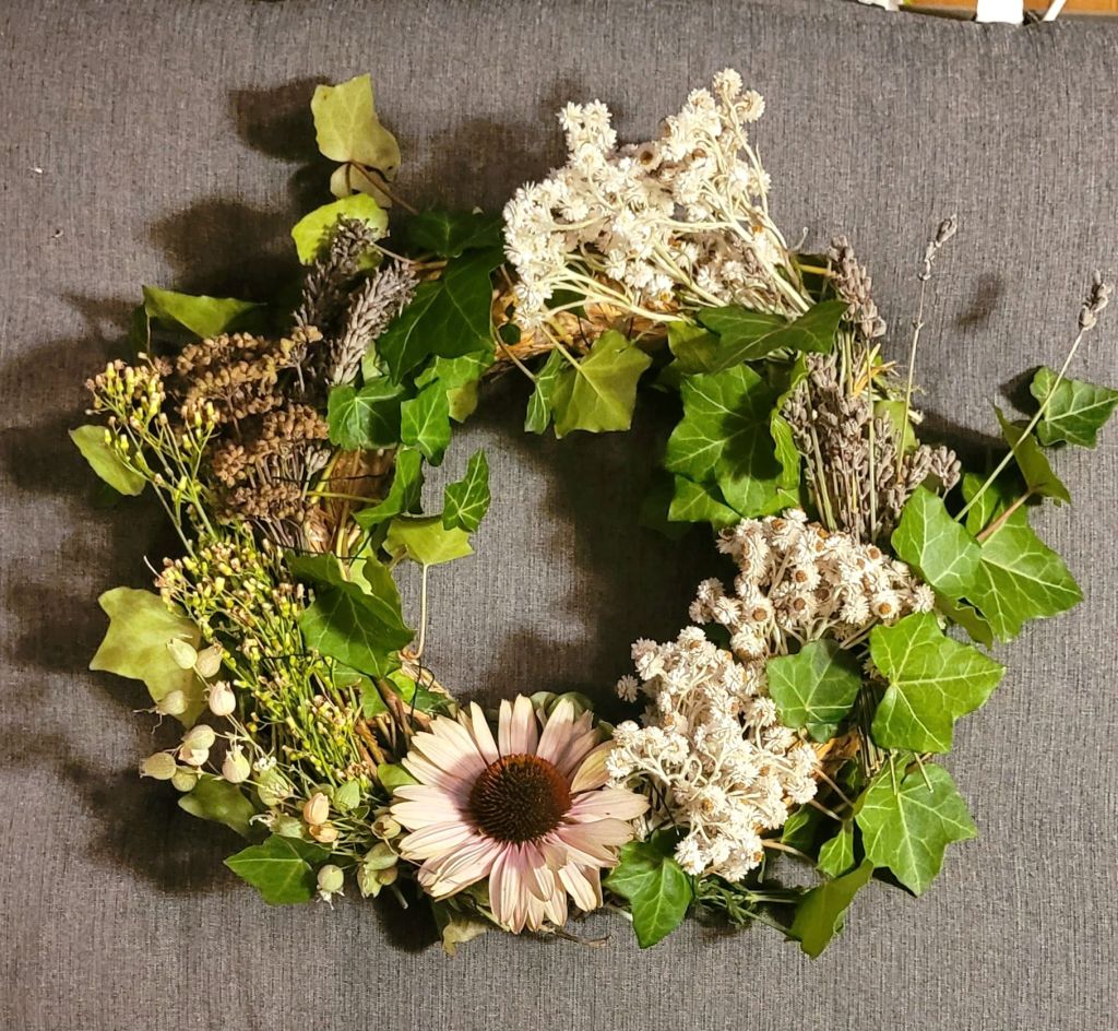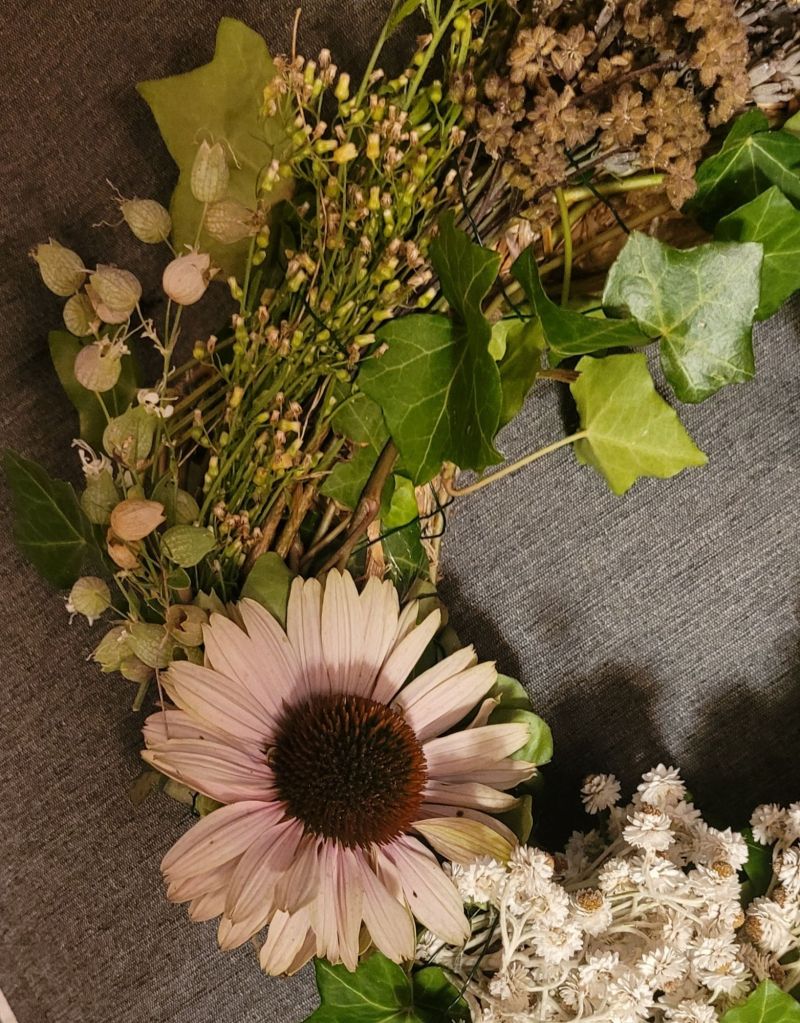 Smällglimma,torkad lavendel, murgröna, rudbeckia med mera