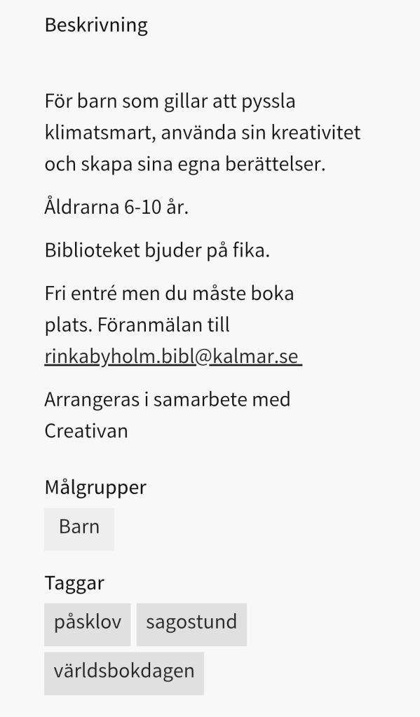 Jag är en glad, lugn och kreativ person. Har utbildat mig inom konst, skapande, pedagogik, barn o ungdomslitteratur. Jag har även 15 år arbetslivserfarenhet inom kulturfältet, såsom bibliotek, teater, konsthall, skola, museum, kulturhus och barnutställningar. Senaste 10 åren har jag specialiserat mig på "diy" att skapa giftfria produkter till kropp och hem. Nu vill jag sprida min kunskap och glädje som jag byggt upp genom möten i livet. Så ta del av mina workshops inom tema som hållbarhet, cirkulärt liv, skapande, natur, litteratur med mera. Allt har en röd tråd, att våga leva med bra livskvalité genom kreativt skapande som ger lite avtryck på vår vackra natur. Om du gör lite och inspirera andra så har du gjort något 💖 Visa fler inlägg