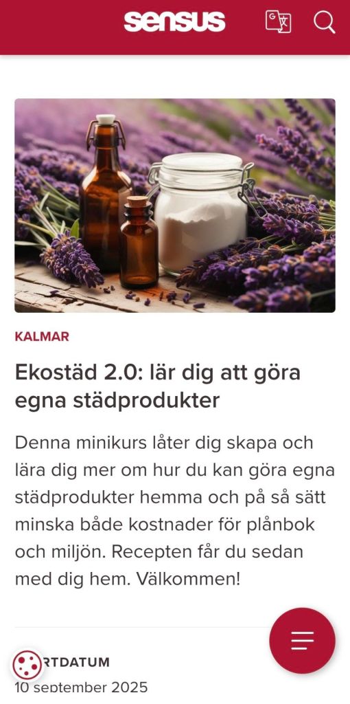 Jag är en glad, lugn och kreativ person. Har utbildat mig inom konst, skapande, pedagogik, barn o ungdomslitteratur. Jag har även 15 år arbetslivserfarenhet inom kulturfältet, såsom bibliotek, teater, konsthall, skola, museum, kulturhus och barnutställningar. Senaste 10 åren har jag specialiserat mig på "diy" att skapa giftfria produkter till kropp och hem. Nu vill jag sprida min kunskap och glädje som jag byggt upp genom möten i livet. Så ta del av mina workshops inom tema som hållbarhet, cirkulärt liv, skapande, natur, litteratur med mera. Allt har en röd tråd, att våga leva med bra livskvalité genom kreativt skapande som ger lite avtryck på vår vackra natur. Om du gör lite och inspirera andra så har du gjort något 💖 Visa fler inlägg