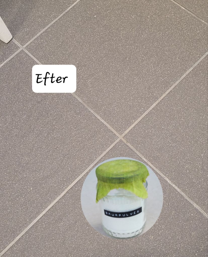Före och efter foto på resultat av giftfritt skurpulver