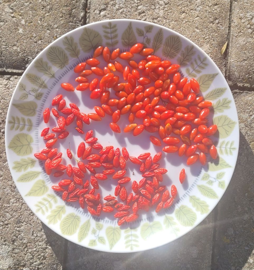 Magiskt ljus och skörd av gojibär i solen.